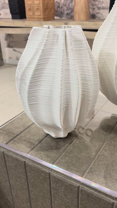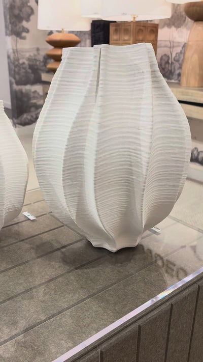 Callie Ceramic Vase - Sculptural Off-White Ridged Vessel (Small or Large)